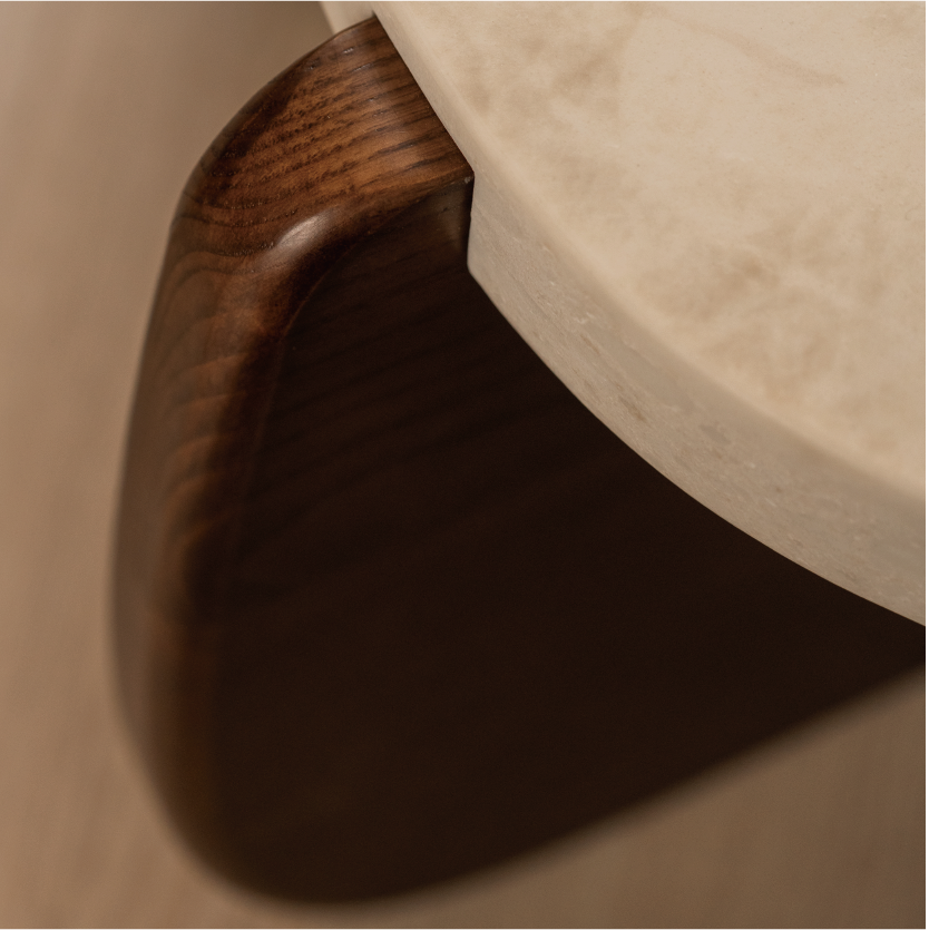 石嶼的桌腳,hos團隊精心設計溫潤的木頭來搭配石材桌面,還有兩種木茶几腳讓你來挑選與搭配