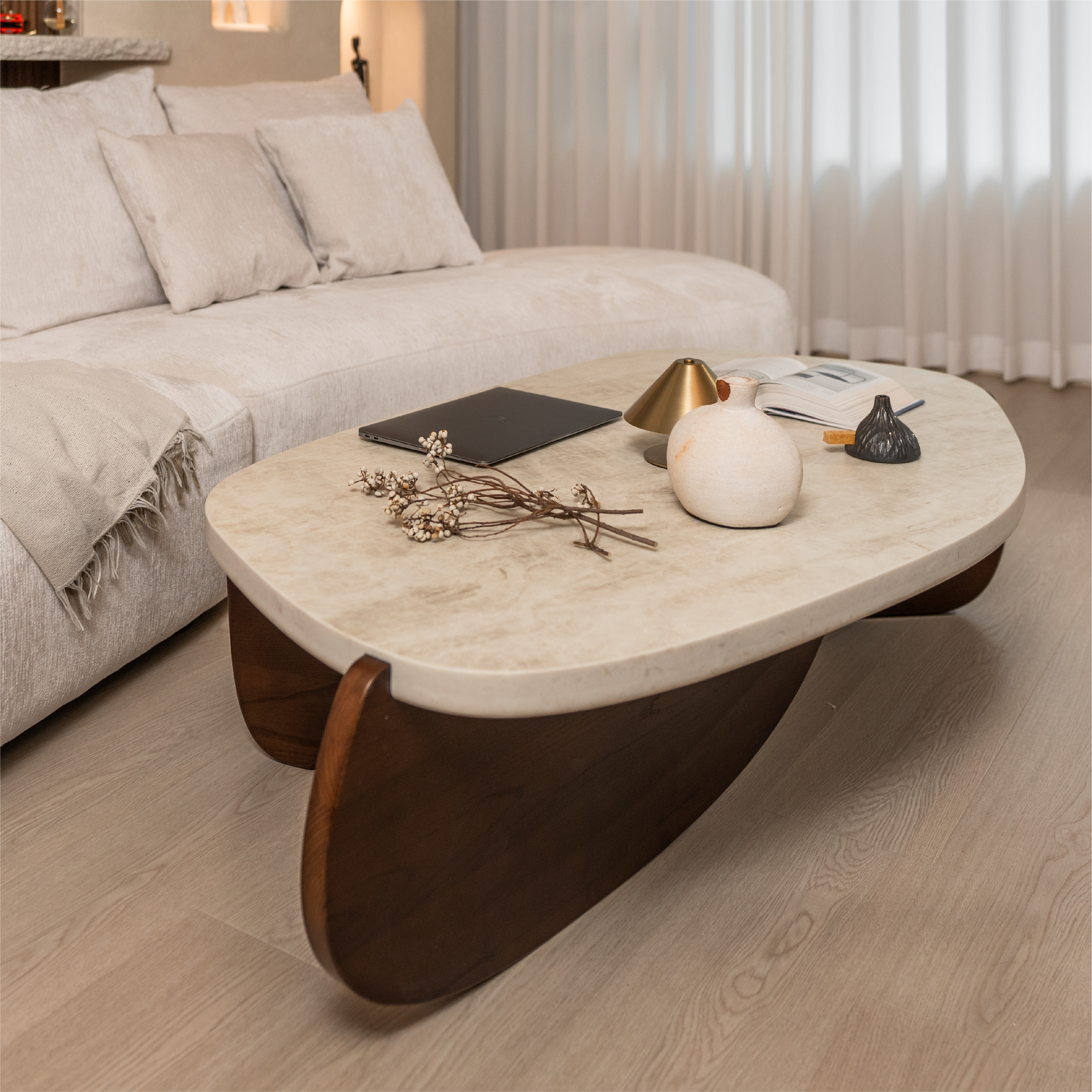 跟著石嶼茶几一起生活吧!有著石材的穩重,還有木頭帶來的溫度。